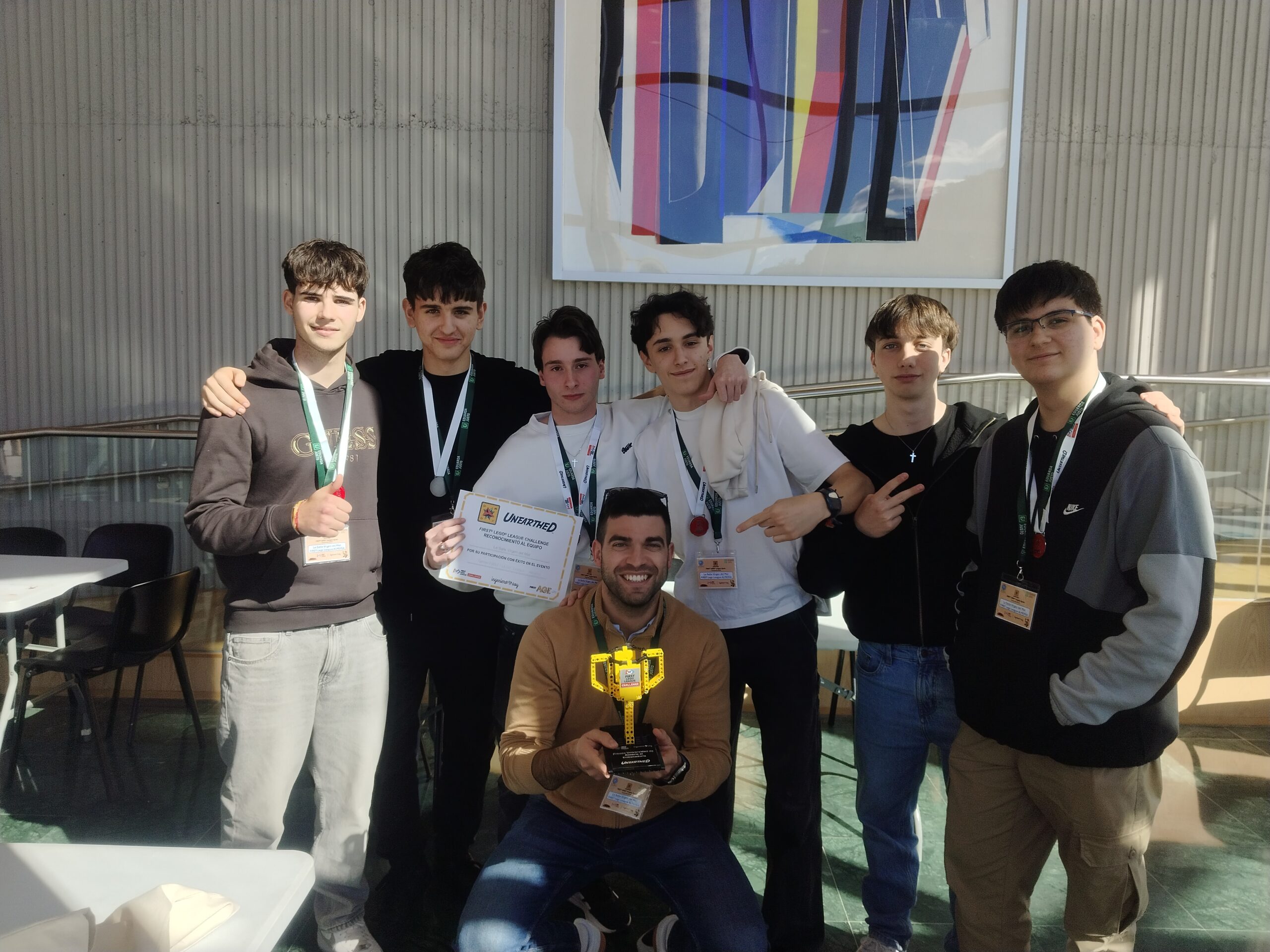 En esta vigésima edición, el reto mundial propuesto, denominado UNEARTHED, giraba en torno al mundo de la arqueología. Nuestros alumnos demostraron todo el trabajo realizado durante meses, defendiendo con gran seguridad su Proyecto de Innovación y el Diseño de su Robot ante los jueces. Posteriormente, en el Paraninfo, vivieron con intensidad las rondas del «Juego del Robot», superando los desafíos en tiempo real sobre el tablero y colaborando como un verdadero equipo.